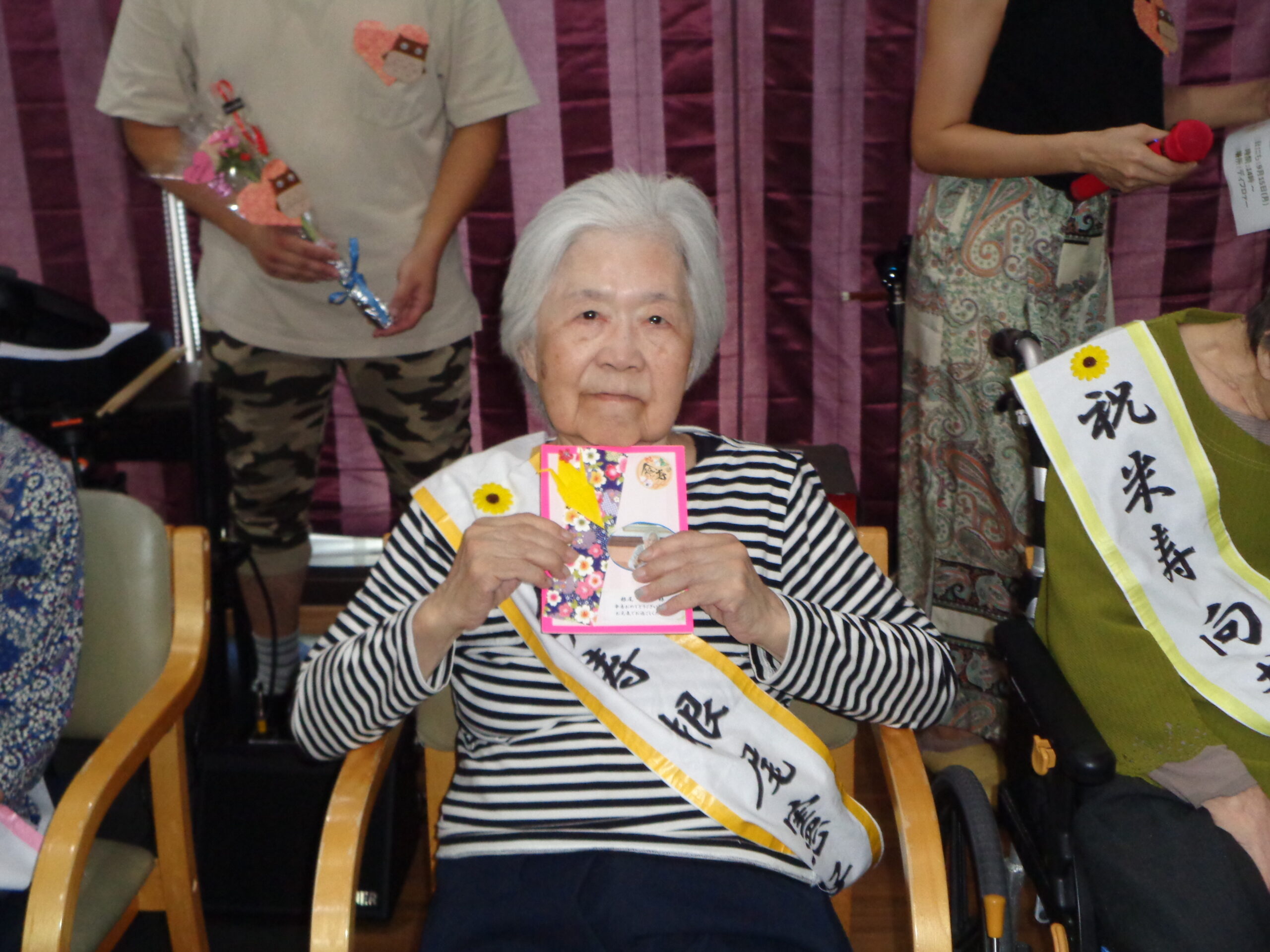 この度、敬老の日に敬老会を開催しました。グランドハウスでは5名の方がお祝いを迎えみなさんで盛大にお祝いしました。